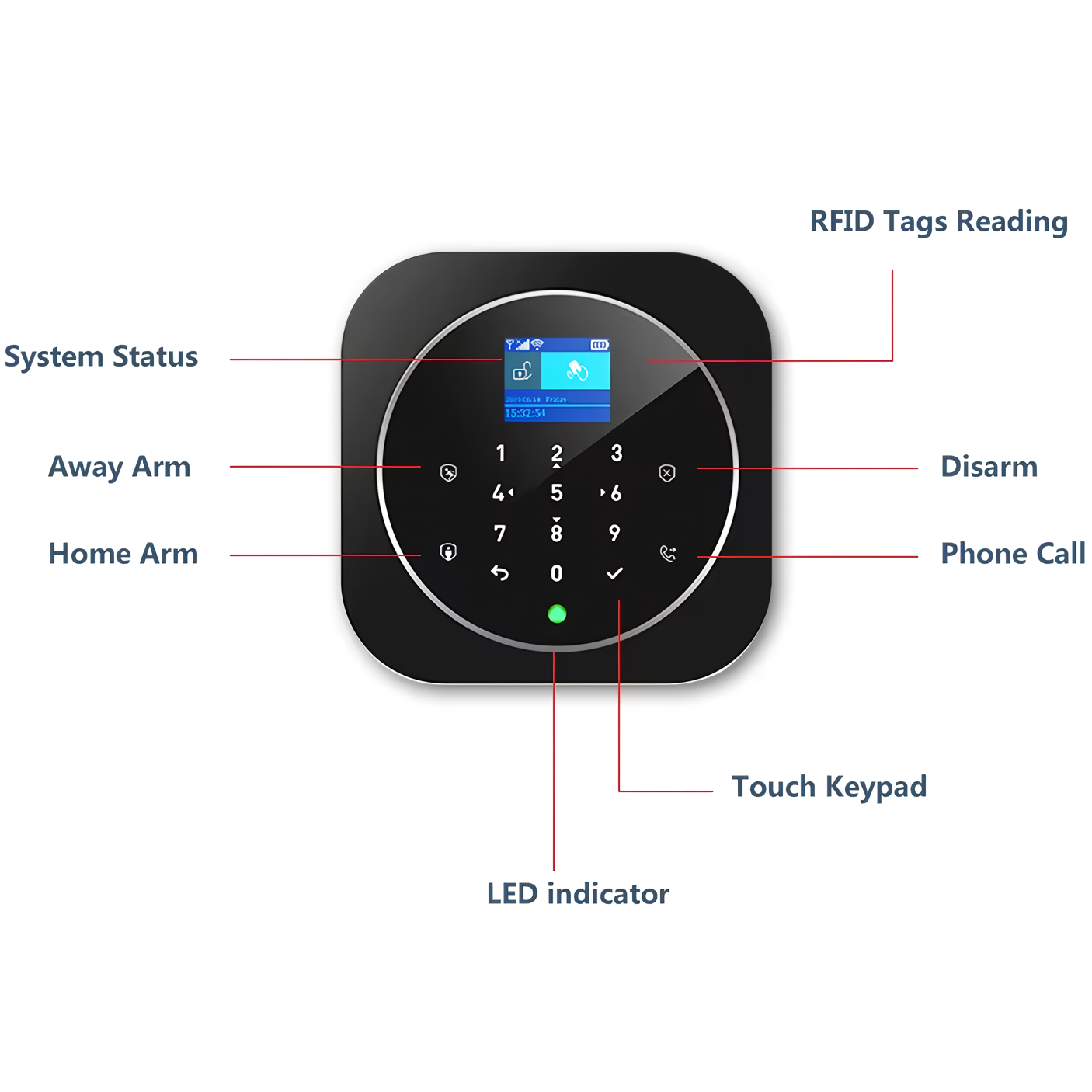 - Quickly arm or disarm with passcode or included remote controllers and RFID tags