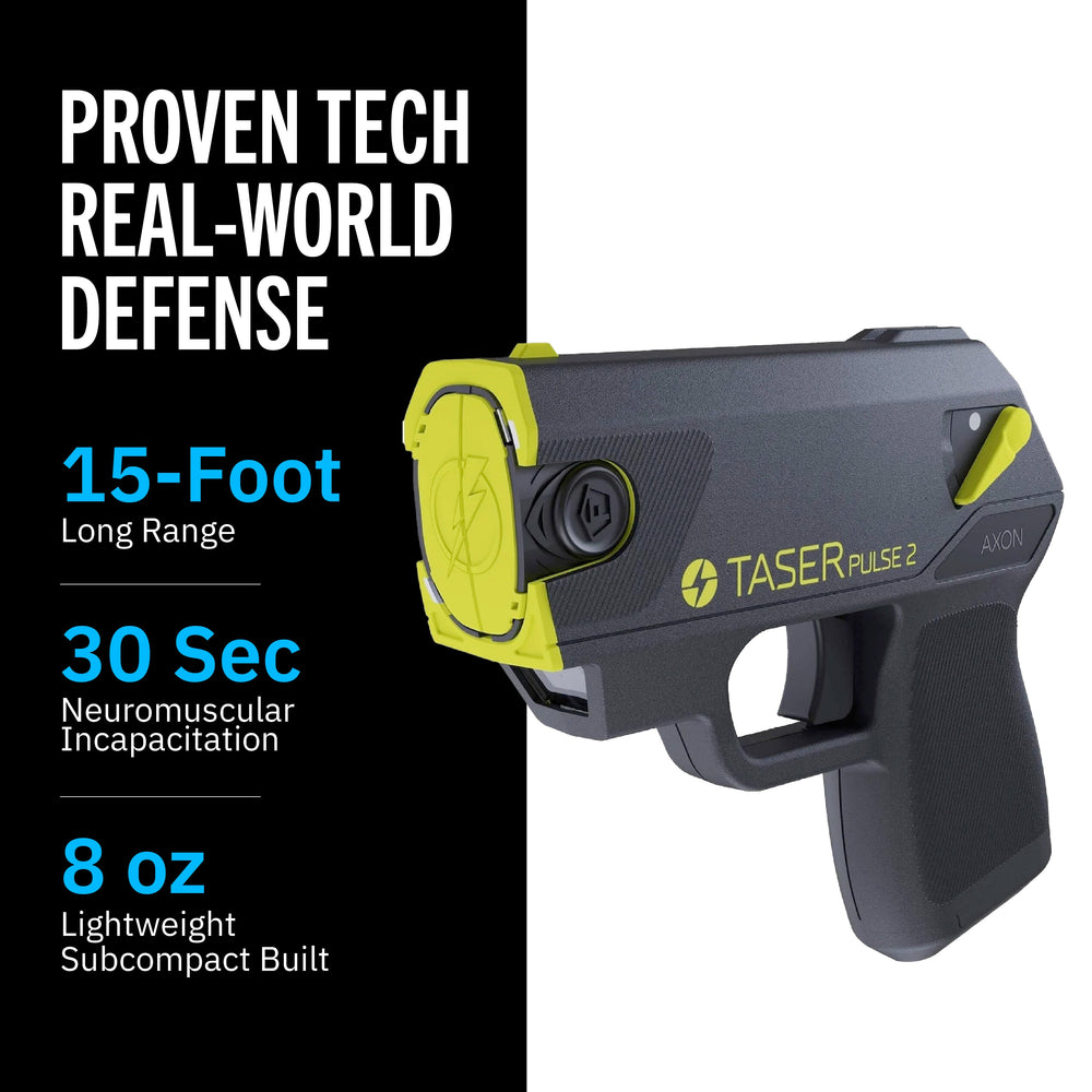 - Includes: TASER® Pulse 2 Compact Shooting Stun Gun