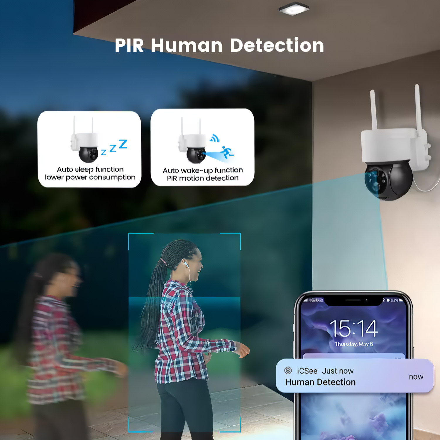 • 2-way audio with built-in speaker & microphone to communicate with family or strangers