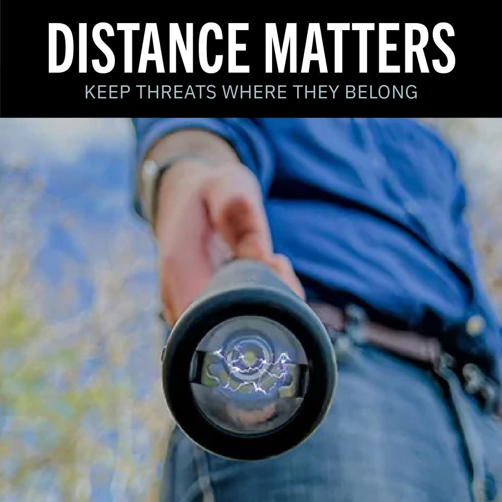 With an extended reach and powerful stun capability, the Lightning Rod Baton lets you maintain a safe distance while taking control of any situation. Its intimidating crackling arc and tactical design make it a trusted choice for professionals and civilians alike.