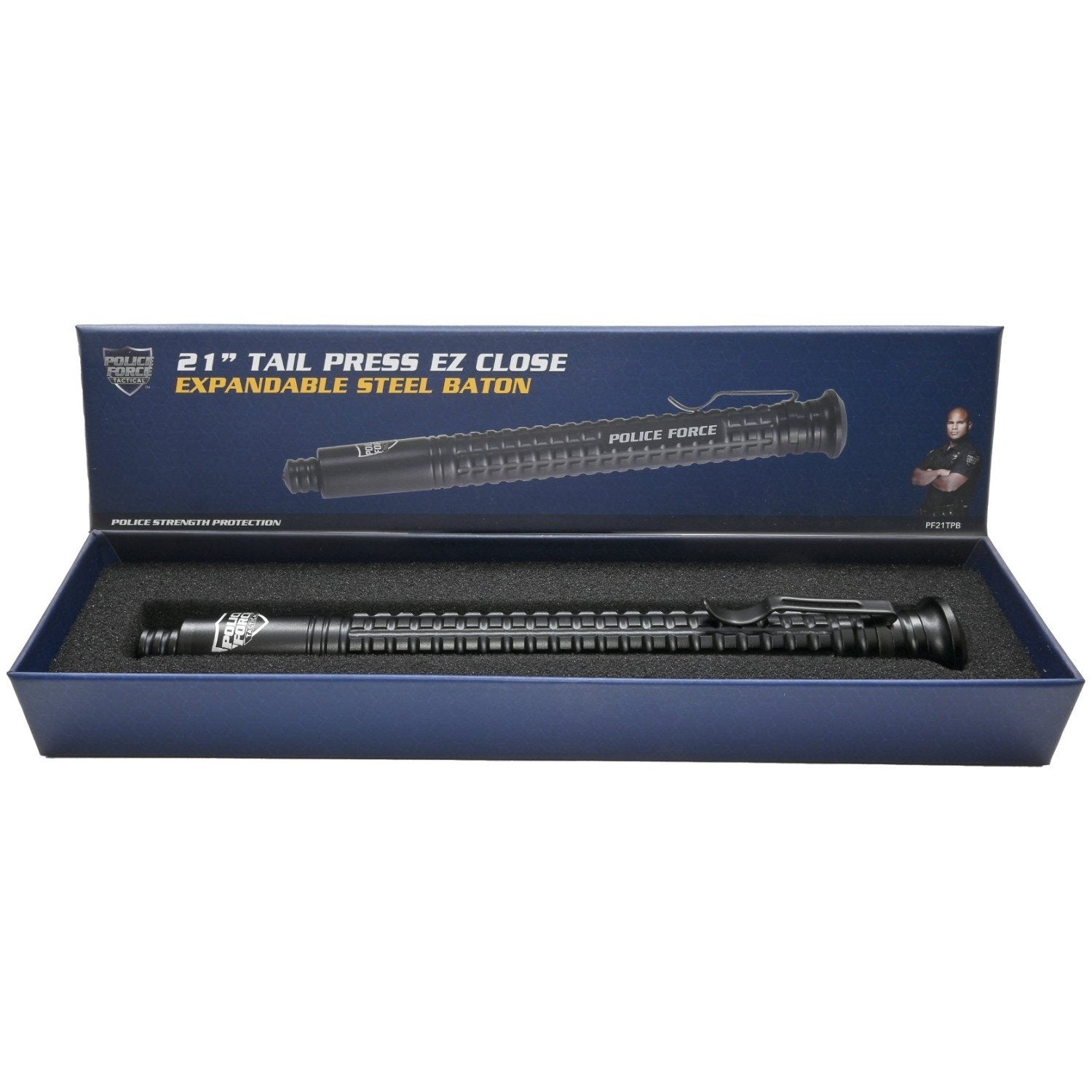 - Police Force Tactical Push Button EZ Close Expandable Steel Baton 21 ''