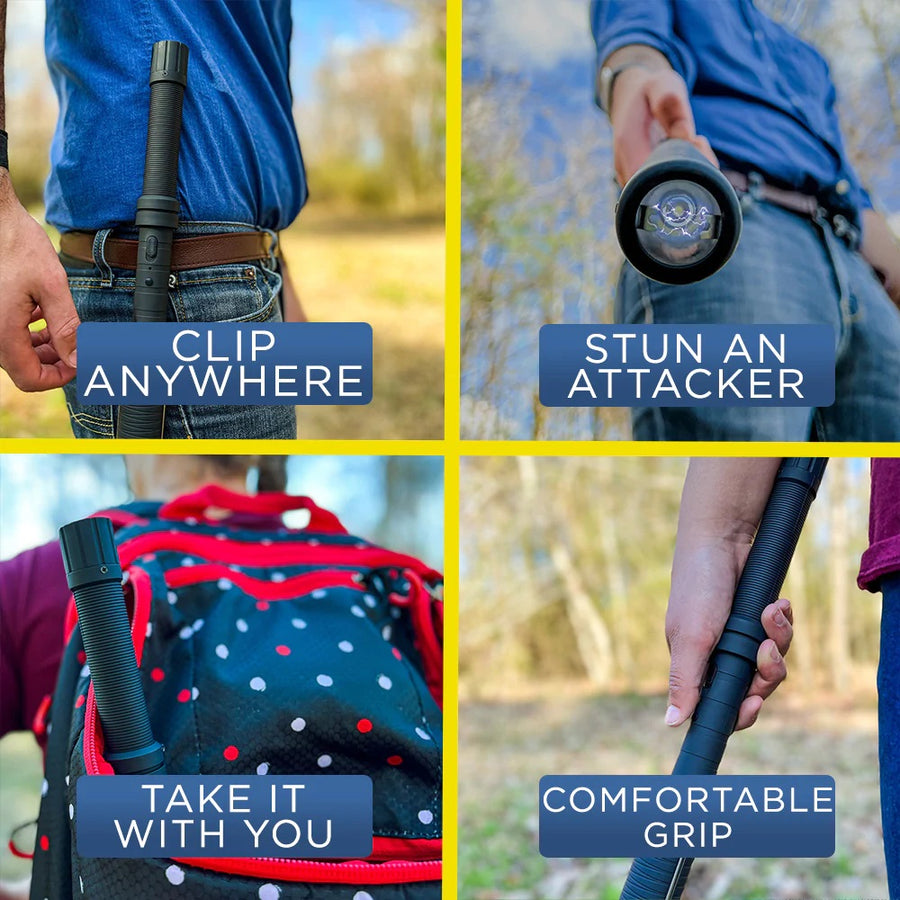 - This is NOT a striking baton and only works as a stun gun that provides distance from attackers