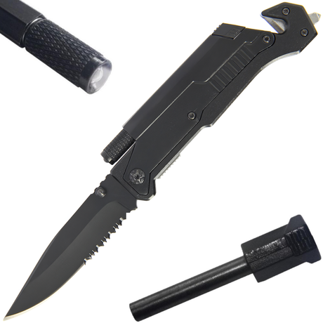Tiger-USA 5-in-1 EDC Folding Survival Pocket Knife w/ LED Light & Fire Starter