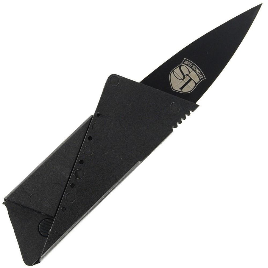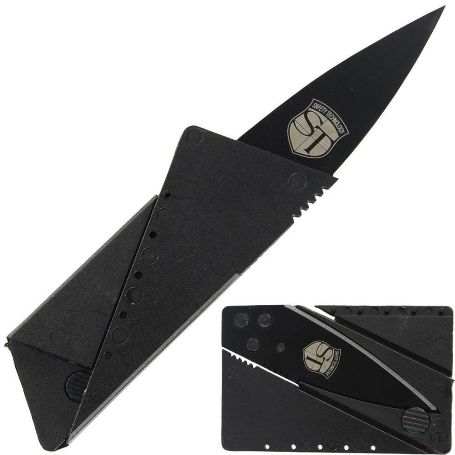 Folding Locking Credit Card Knife Black Stainless Steel 2.75"