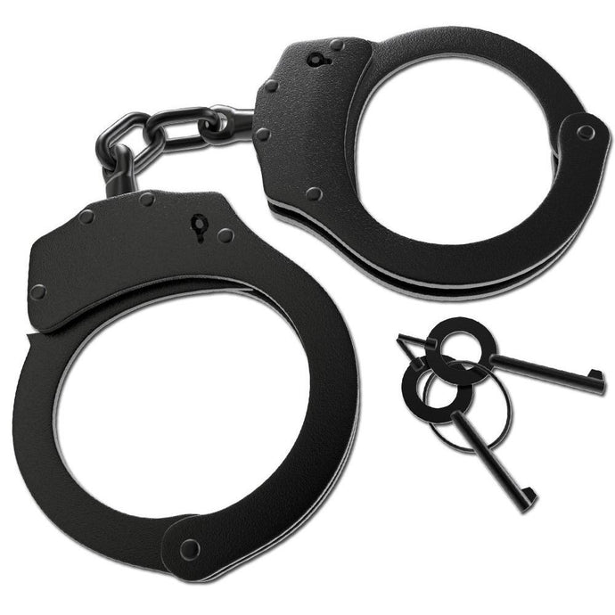 Solid steel handcuffs with a pushpin lock secures without hurting!